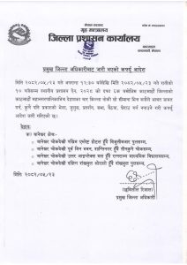 काठमाडौं जिल्ला प्रशासन कार्यालयले नयाँ बानेश्वर क्षेत्रमा कर्फ्यू आदेश जारी गरेको हो । प्रशासनका अनुसार अहिले साढे १२ बजेबाट राति १० बजेसम्म कर्फ्यू लगाइएको हो ।