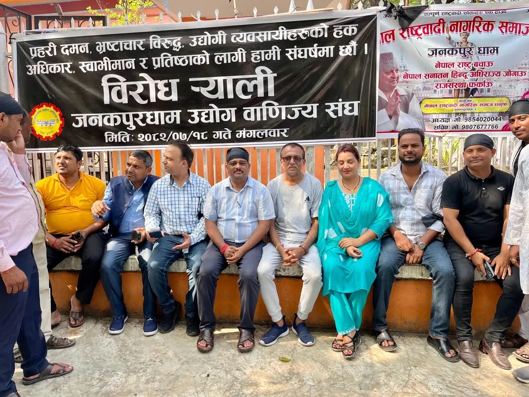 कार्तिक १८, जनकपुरधाम। धनतेरस पर्वको पूर्व सन्ध्यामा जनकपुरधामका व्यापारीहरुले आज तीन घण्टासम्म बजार बन्द गरी प्रदर्शन गरेका छन्। सुनचाँदी बजारमा भएको विवादास्पद घटनाको निष्पक्ष छानबिन र दोषी प्रहरीमाथि कारबाहीको माग गर्दै जनकपुरधाम उद्योग वाणिज्य संघको नेतृत्वमा व्यापारीहरु आन्दोलित भएका हुन्।