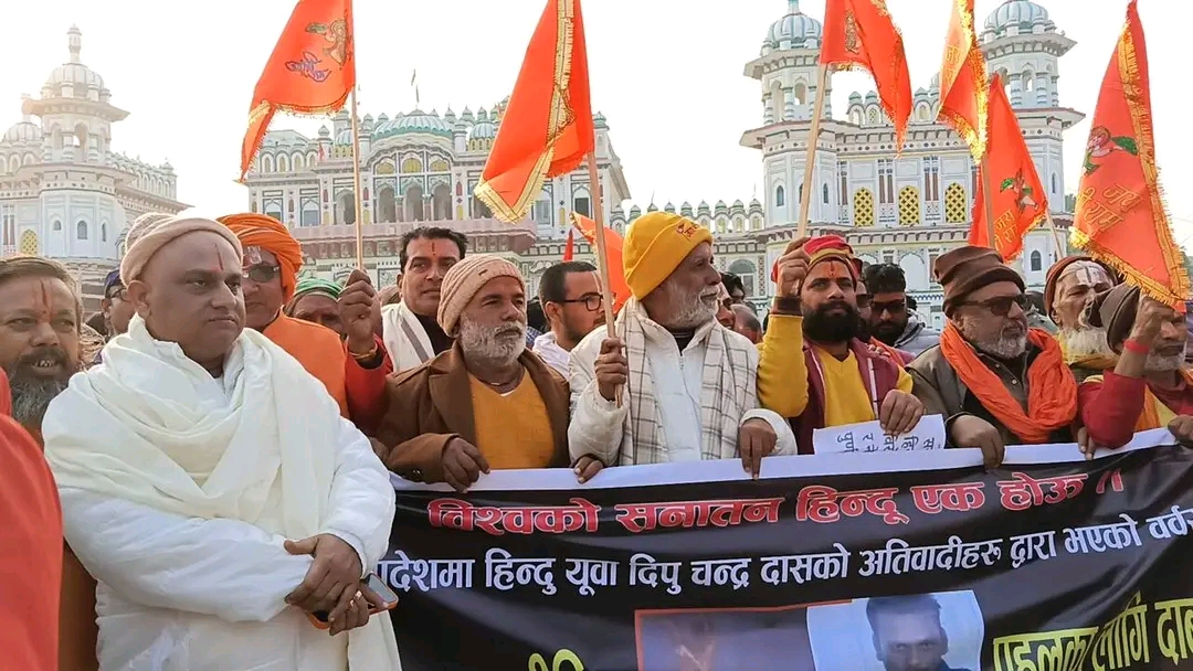 पुस १०, जनकपुरधाम। — बंगलादेशमा हिन्दु युवक दिपुचन्द्र दासको बर्बरतापूर्ण हत्या भएको घटनाको विरोधमा रामानन्दीय वैष्णव संघको अगुवाइमा बिहीबार जनकपुरधाममा शान्तिपूर्ण विरोध प्रदर्शन गरिएको छ।