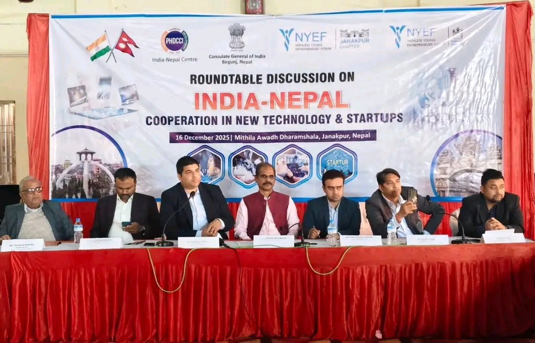 पुस ३, जनकपुरधाम। नेपालस्थित भारतीय महावाणिज्य दूतावास, वीरगञ्ज र PHDCCI ले नेपाल यंग इन्टरप्रेनर्स फोरम (वीरगञ्ज तथा जनकपुर) को सहकार्यमा “India–Nepal Cooperation in New Technology & Startups” विषयमा राउन्डटेबल छलफल आयोजना गरेका छन्।
