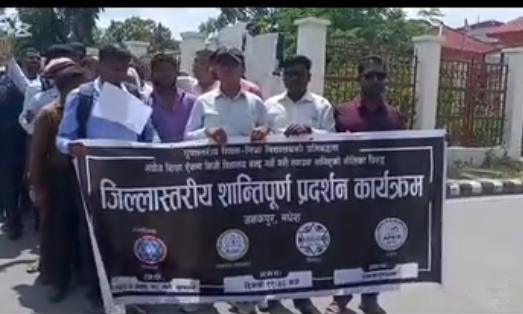 शिक्षा ऐनविरुद्ध जनकपुरधाममा निजी विद्यालय सञ्चालकहरूको शान्तिपूर्ण प्रदर्शन